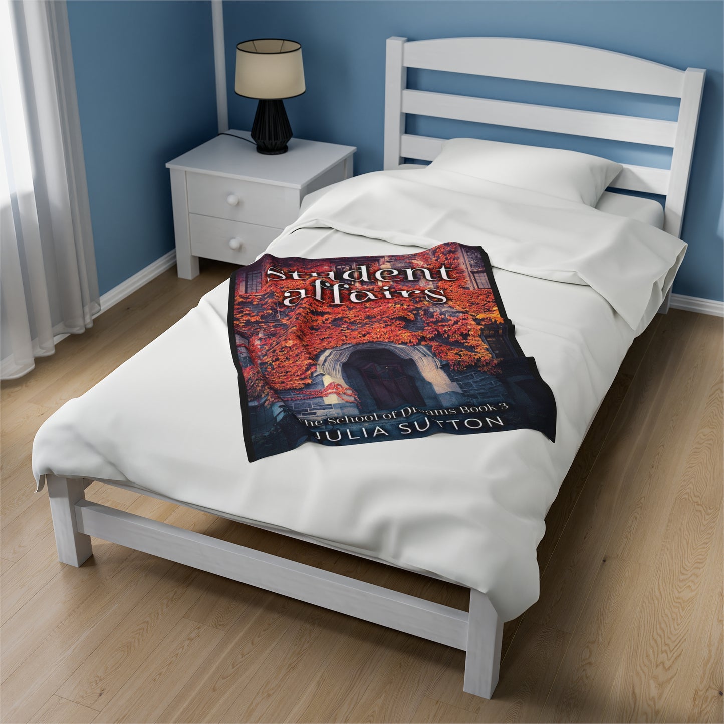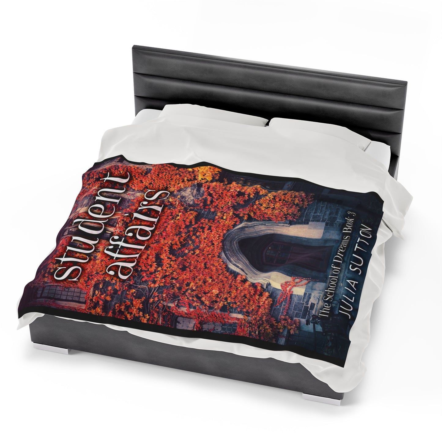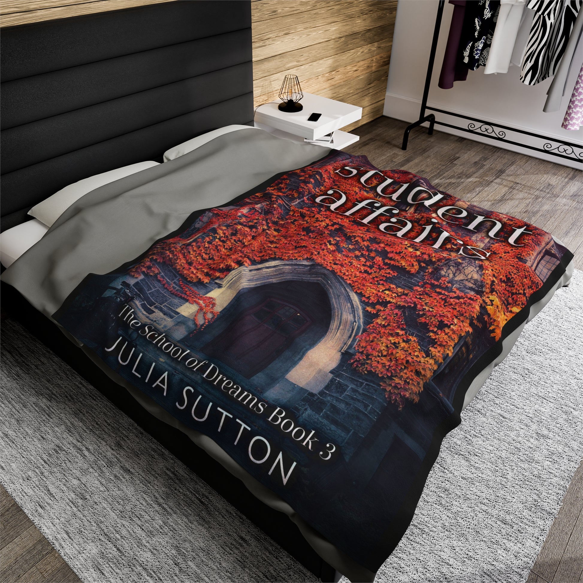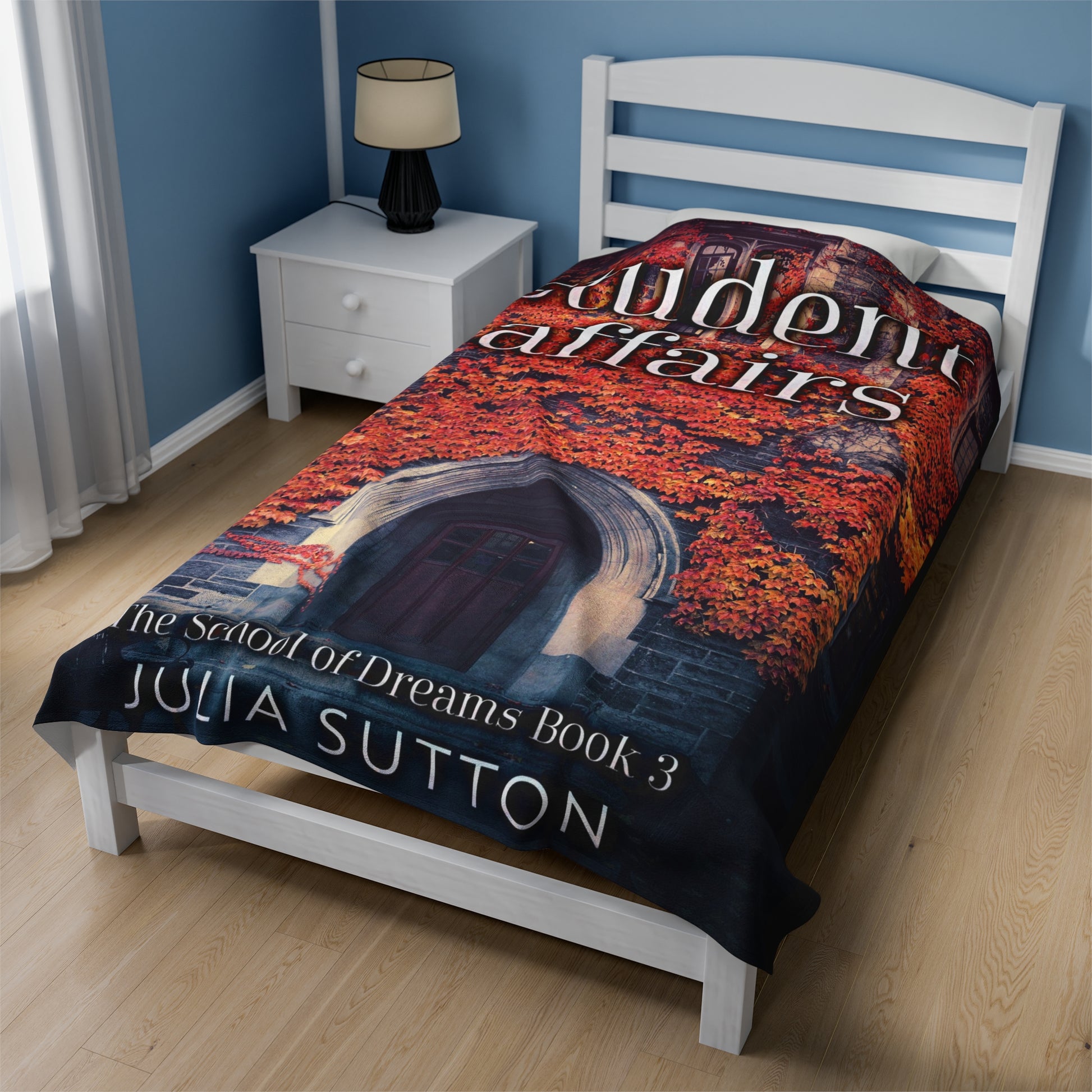 Create a cozy and warm atmosphere at home with this plush velveteen blanket. It is soft to touch and perfect for any home. The cover art in this blanket is from Julia Sutton's book, Student Affairs.