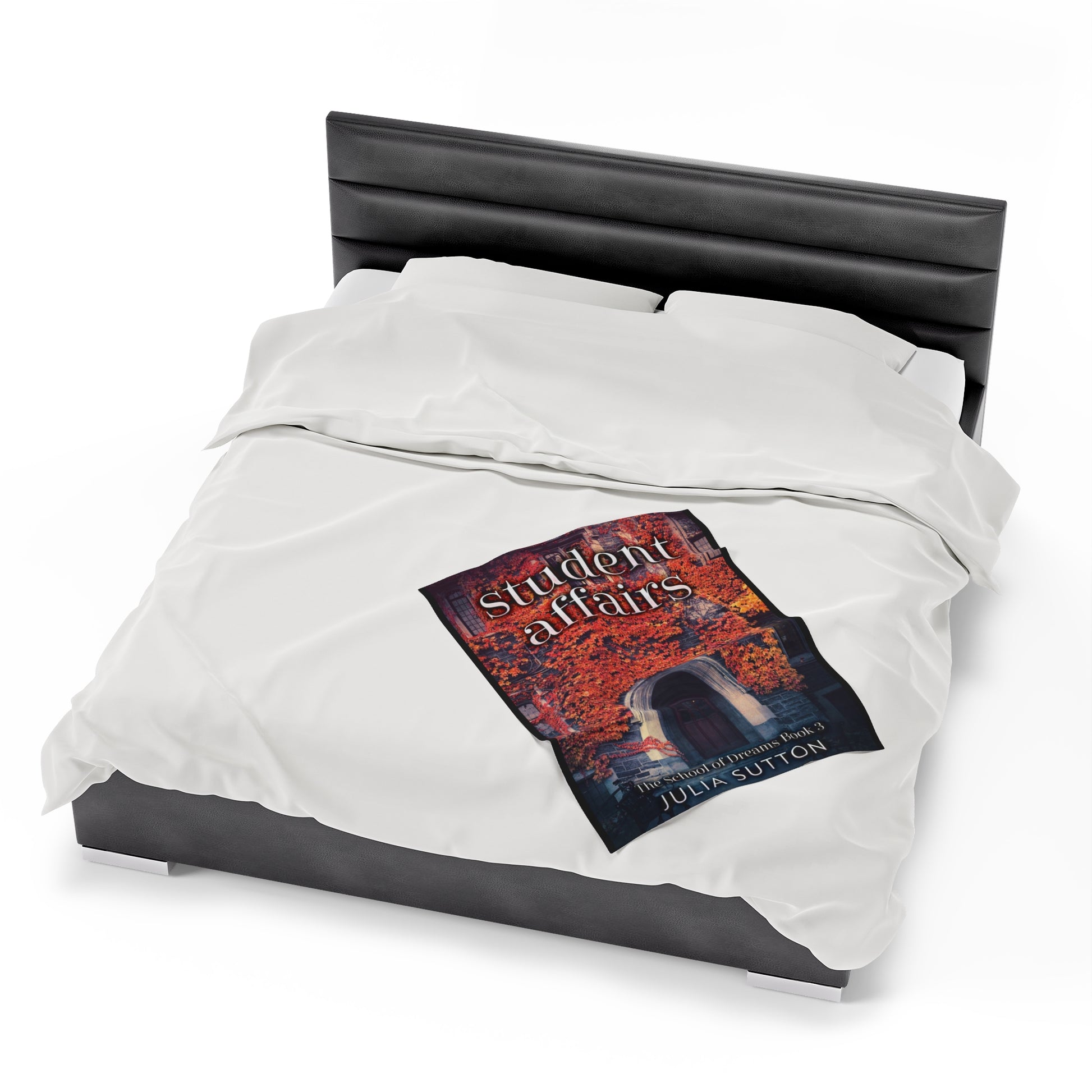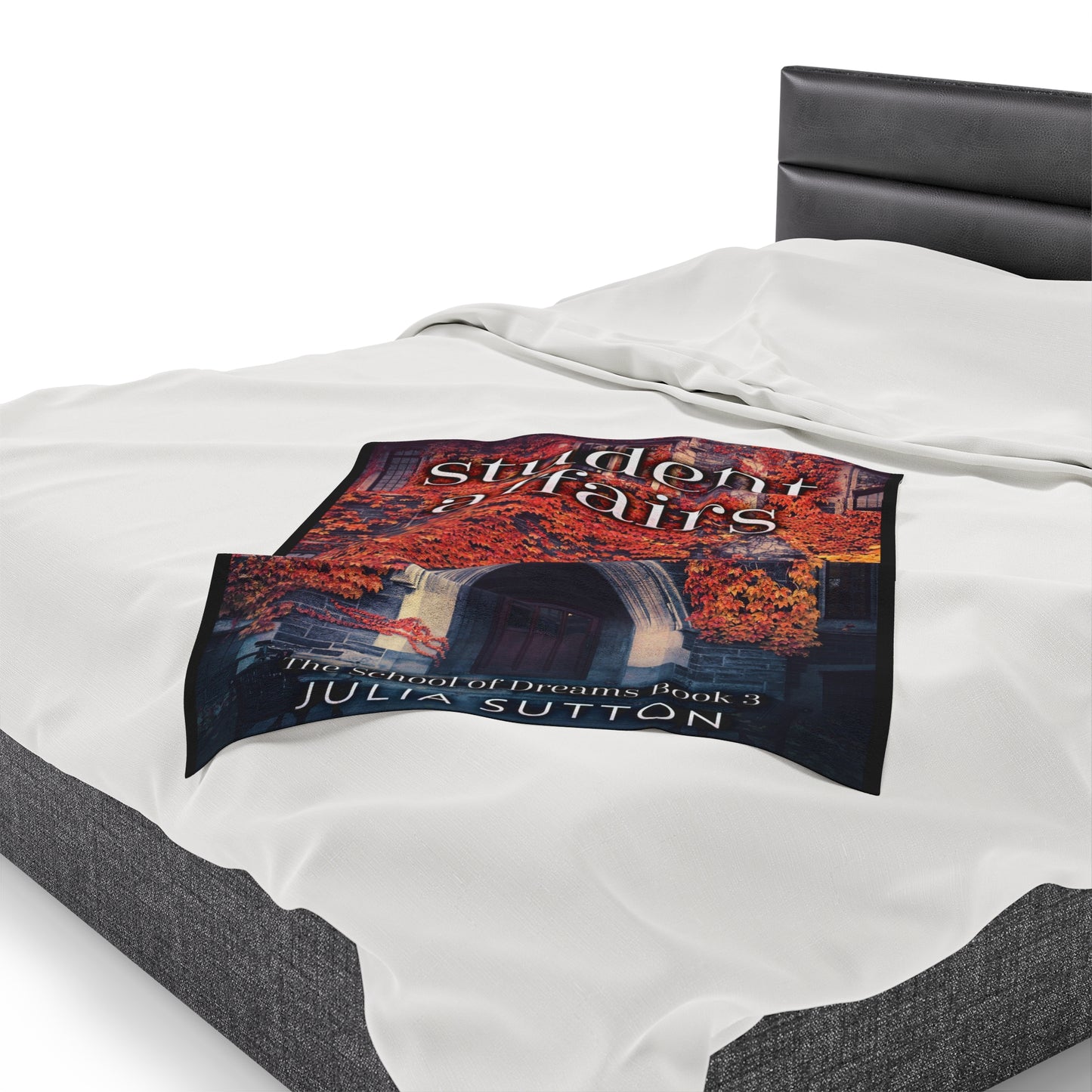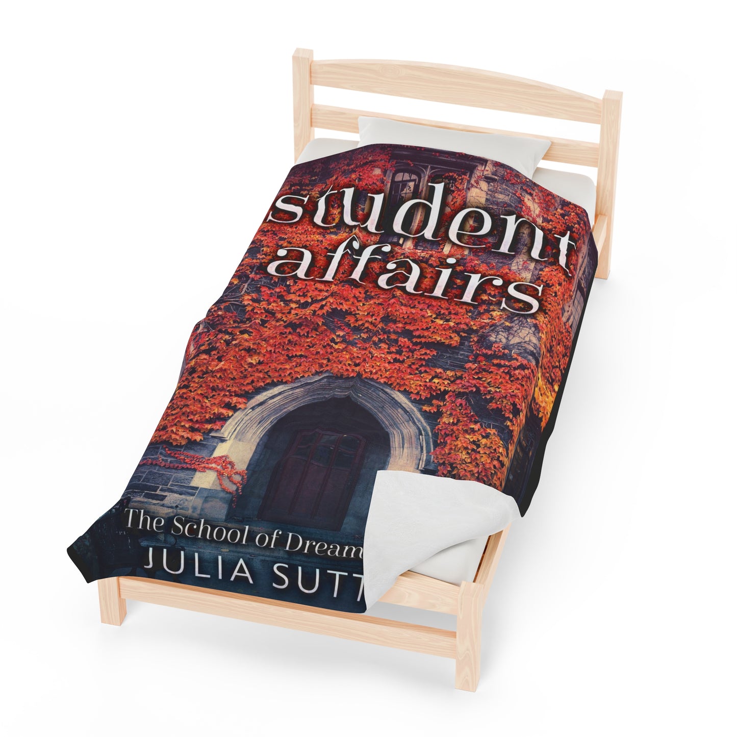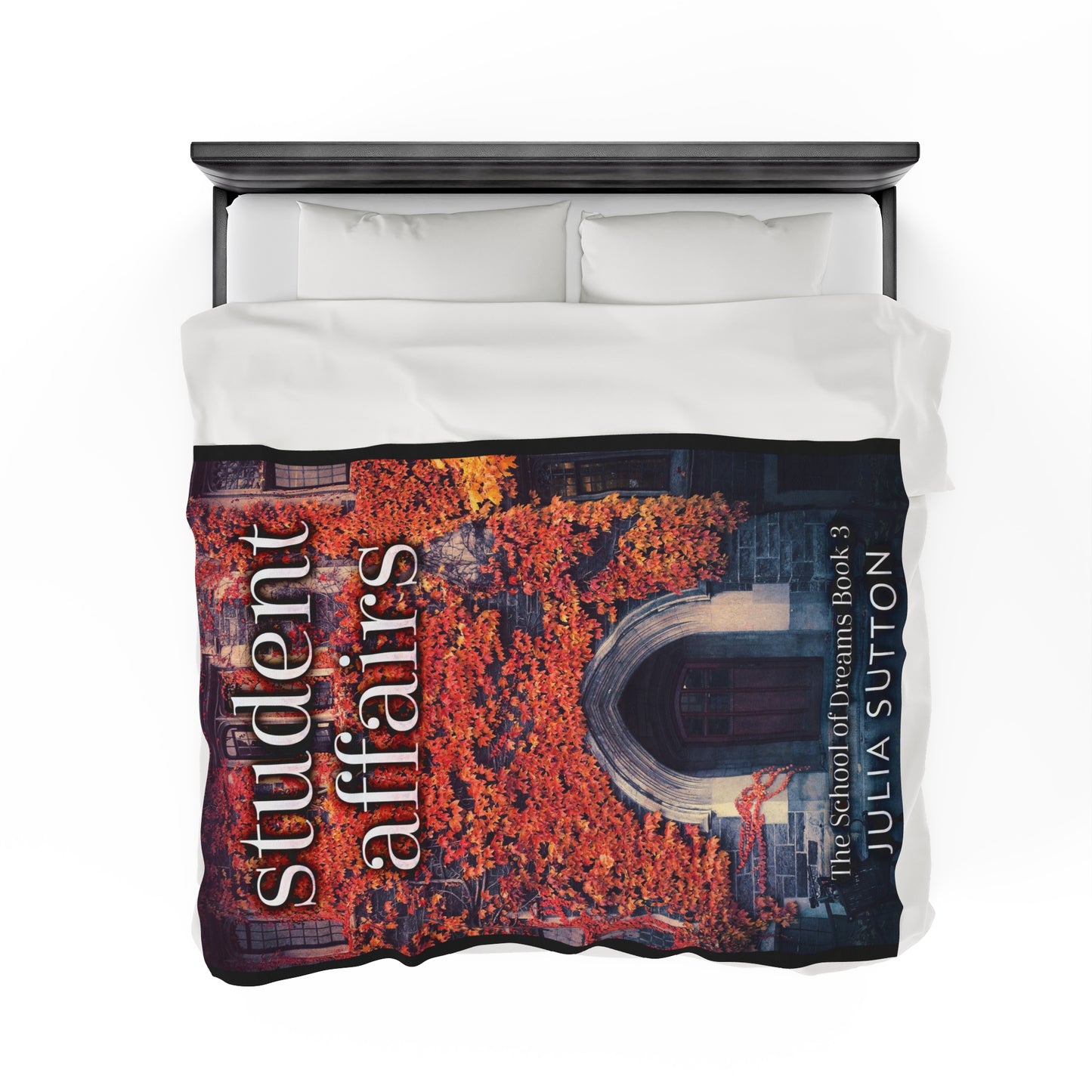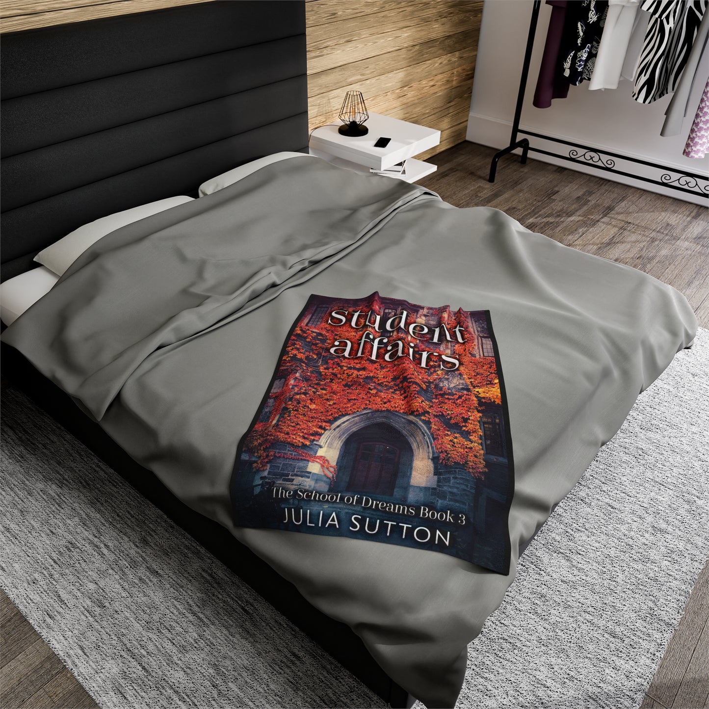 Create a cozy and warm atmosphere at home with this plush velveteen blanket. It is soft to touch and perfect for any home. The cover art in this blanket is from Julia Sutton's book, Student Affairs.