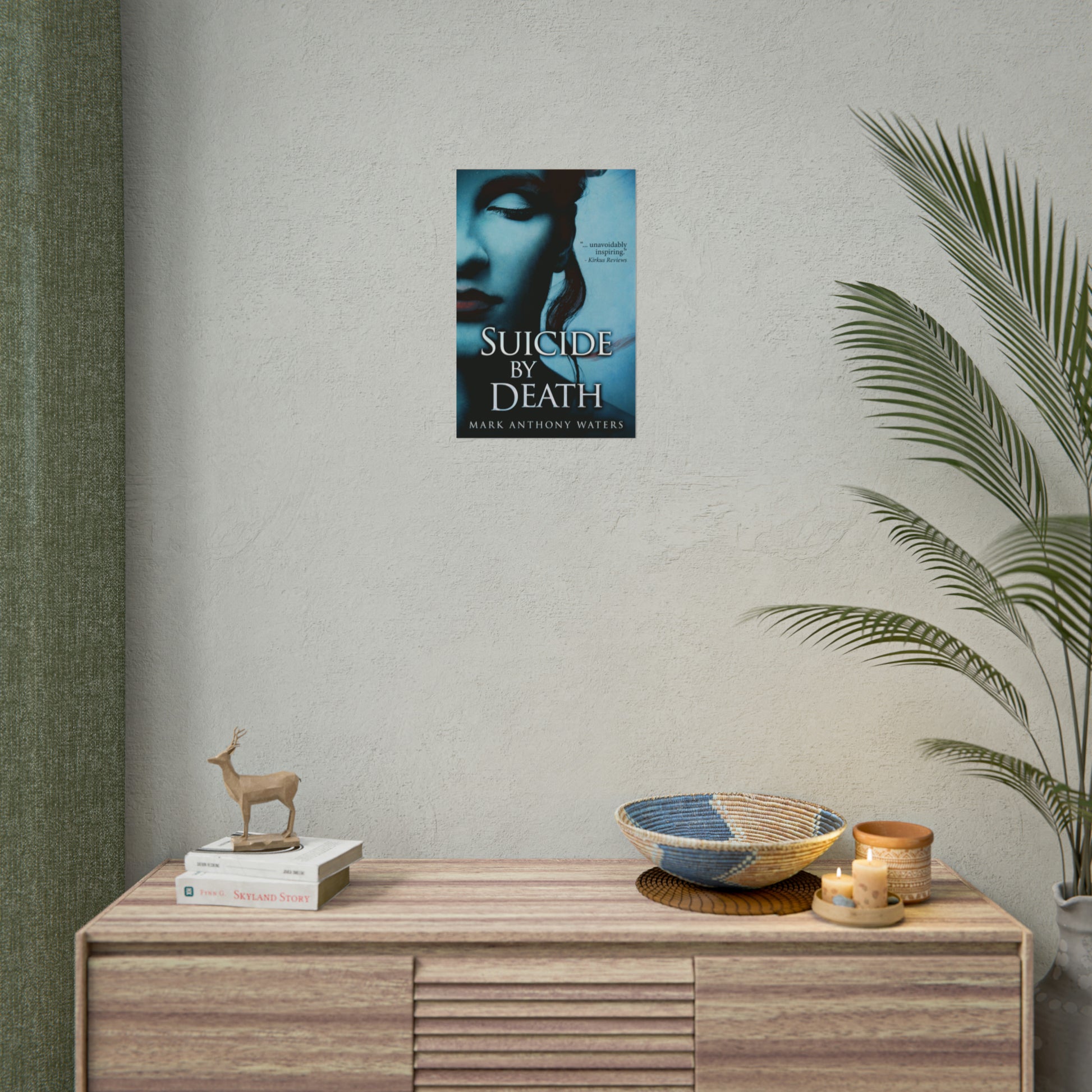 This rolled poster is based on the cover art of Mark Anthony Waters's book, Suicide By Death. Choose between fine-art (310gsm) or semi-gloss paper (260gsm). The fine art paper is equivalent to traditional watercolor or etching paper, and has a soft textured surface and archival quality. The semi-glossy paper is a bright white photo paper with a satin finish, and offers full sharp color fidelity.