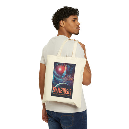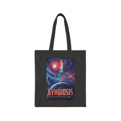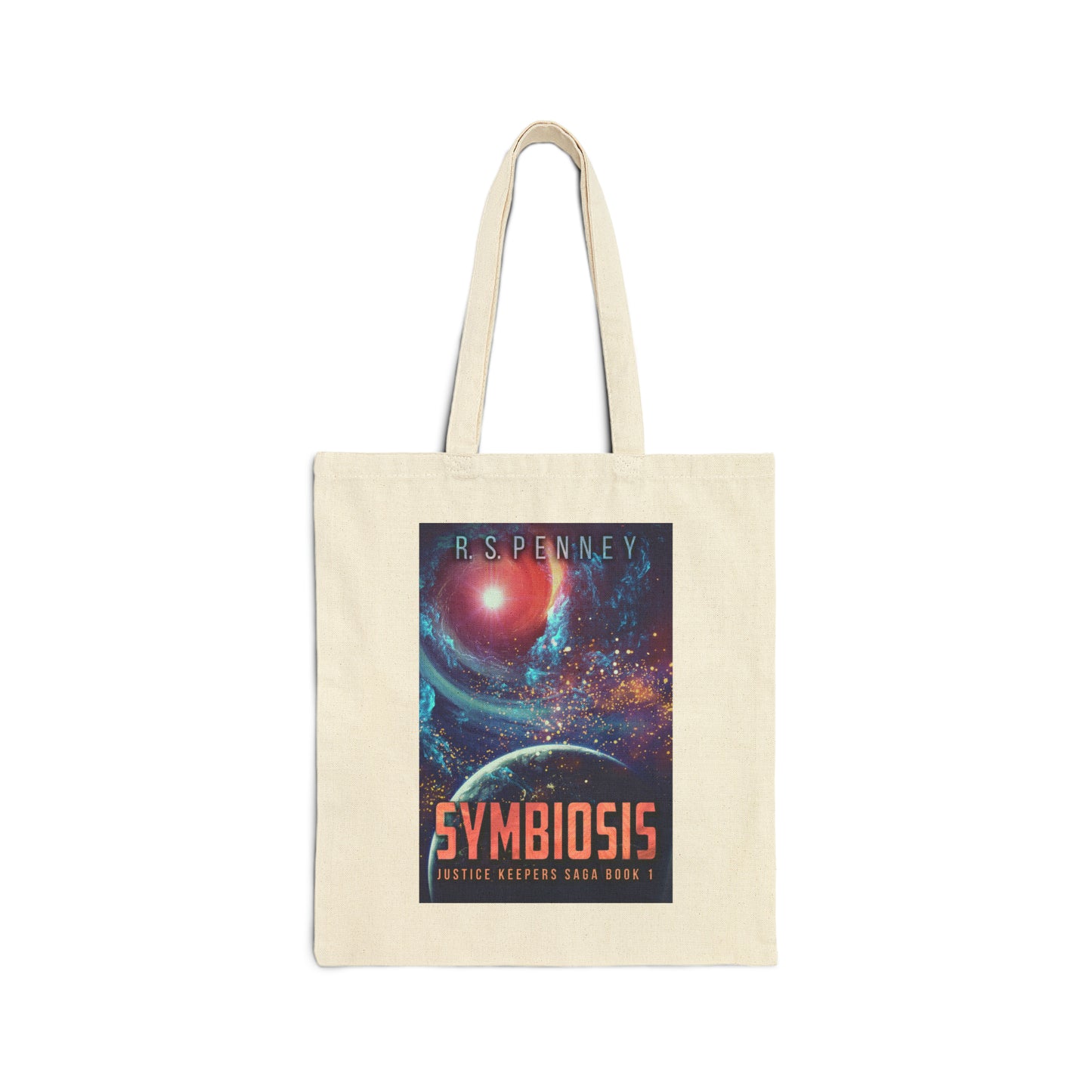 This 100% cotton bag comes in one size – 15" x 16"– perfect for everyday wear. The canvas material is durable and the bag features 20" handles, making it easy to carry even with a week's worth of shopping. The cover art in this tote bag is from R.S. Penney's book, Symbiosis (Justice Keepers Saga Book 1).