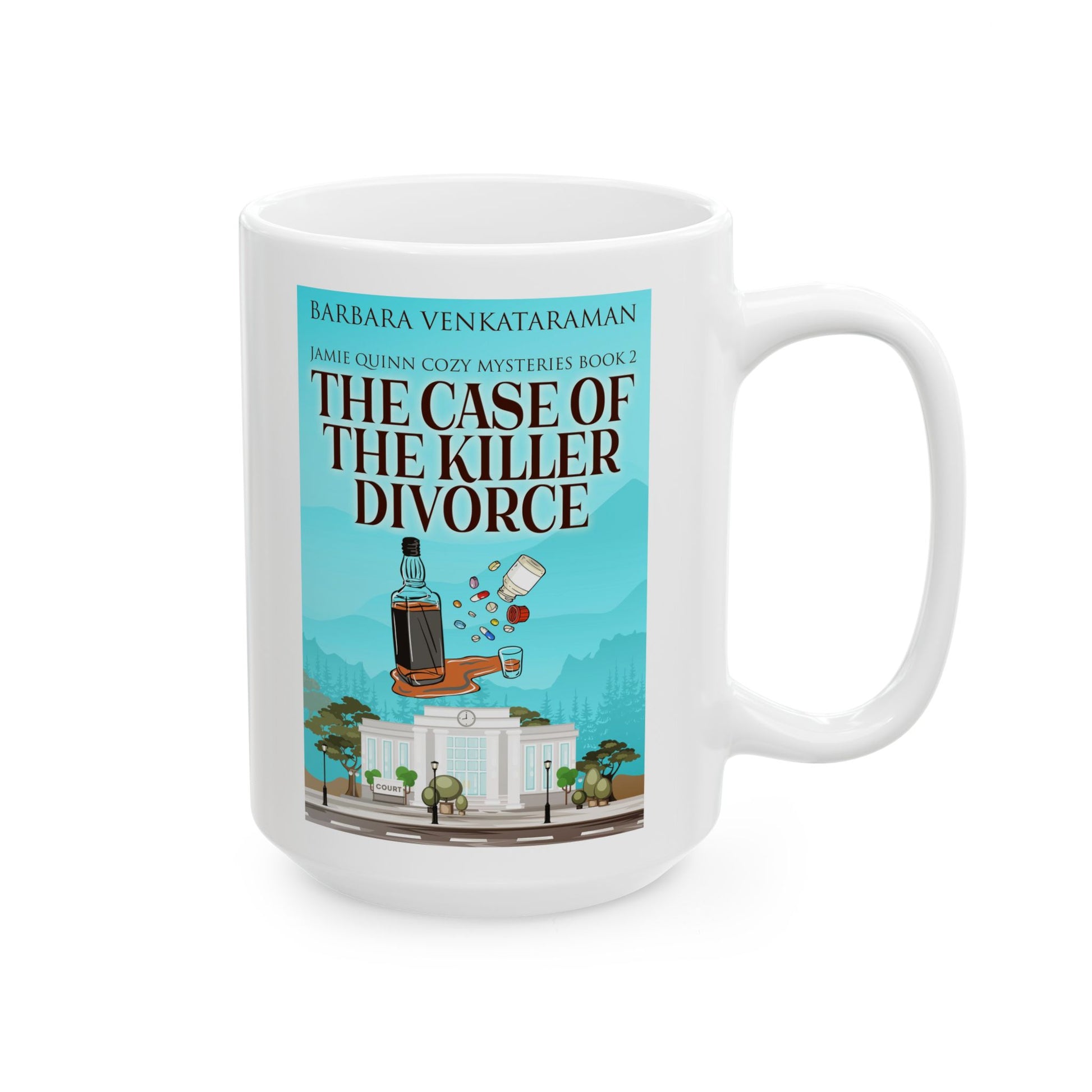 Warm your soul with a nice cuppa out of this perfectly sized white ceramic mug. It’s BPA and lead-free, microwave and dishwasher-safe, and made of durable ceramic. The cover art in this coffee mug is from Barbara Venkataraman's book, The Case Of The Killer Divorce.