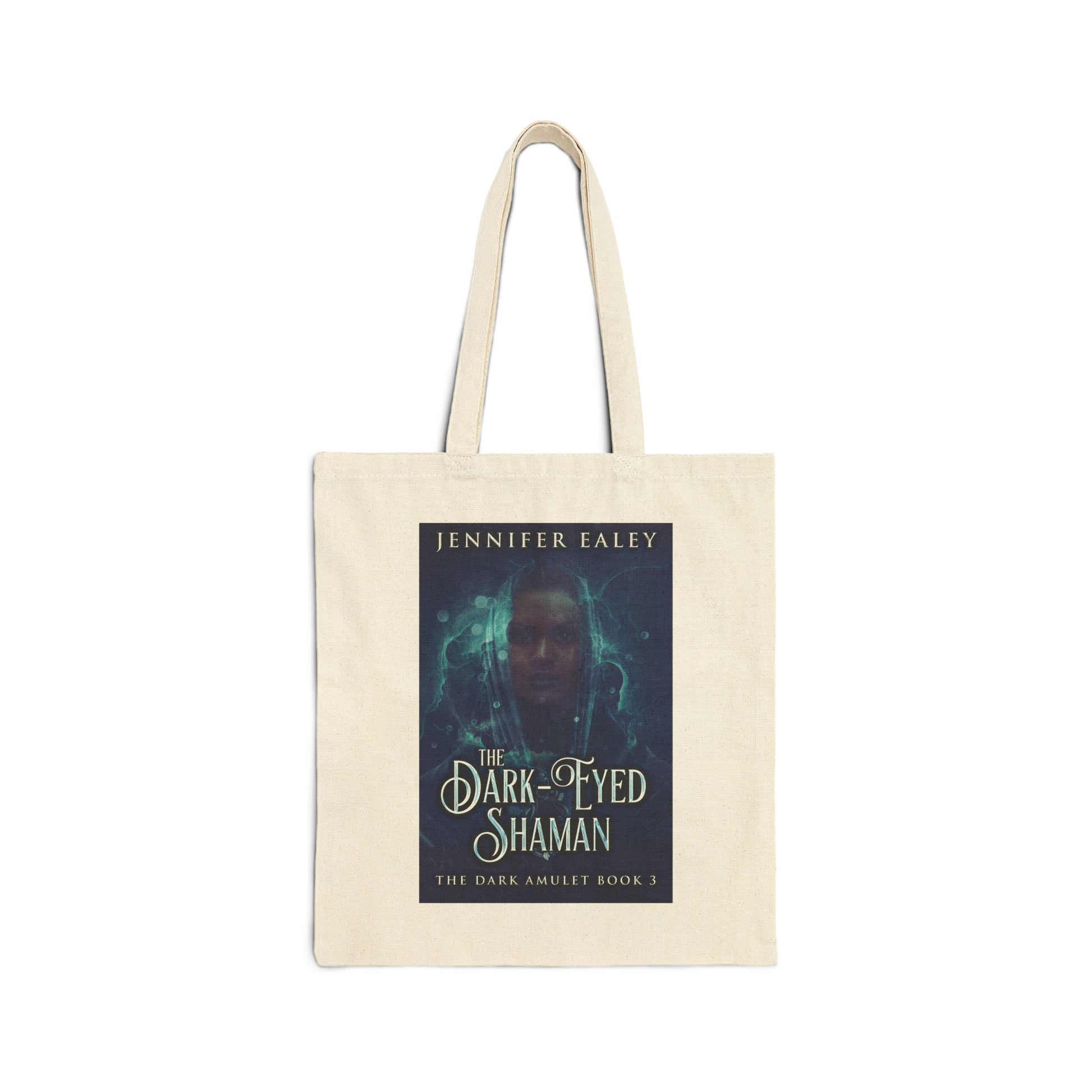 This 100% cotton bag comes in one size – 15" x 16"– perfect for everyday wear. The canvas material is durable and the bag features 20" handles, making it easy to carry even with a week's worth of shopping. The cover art in this tote bag is from Jennifer Ealey's book, The Dark-Eyed Shaman.