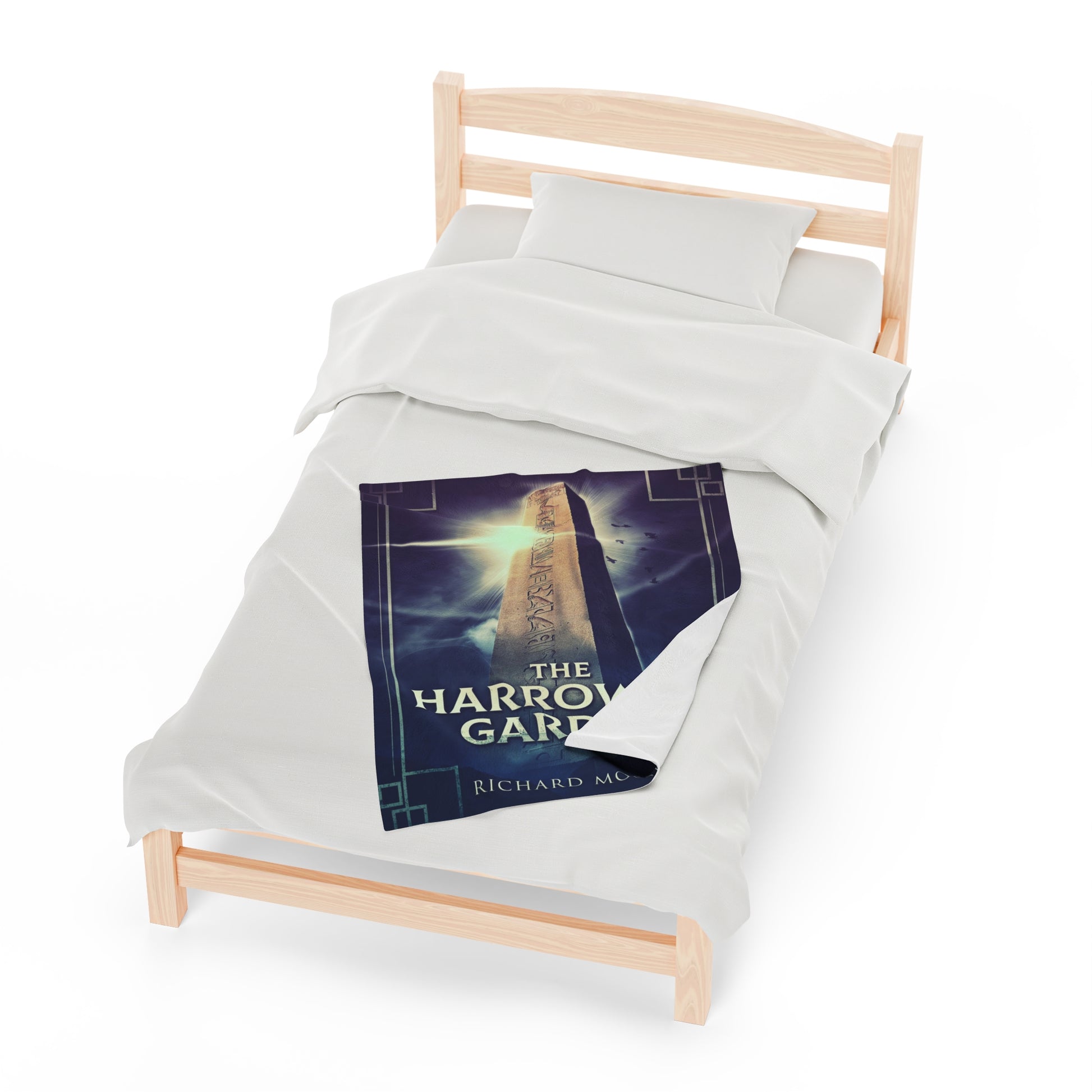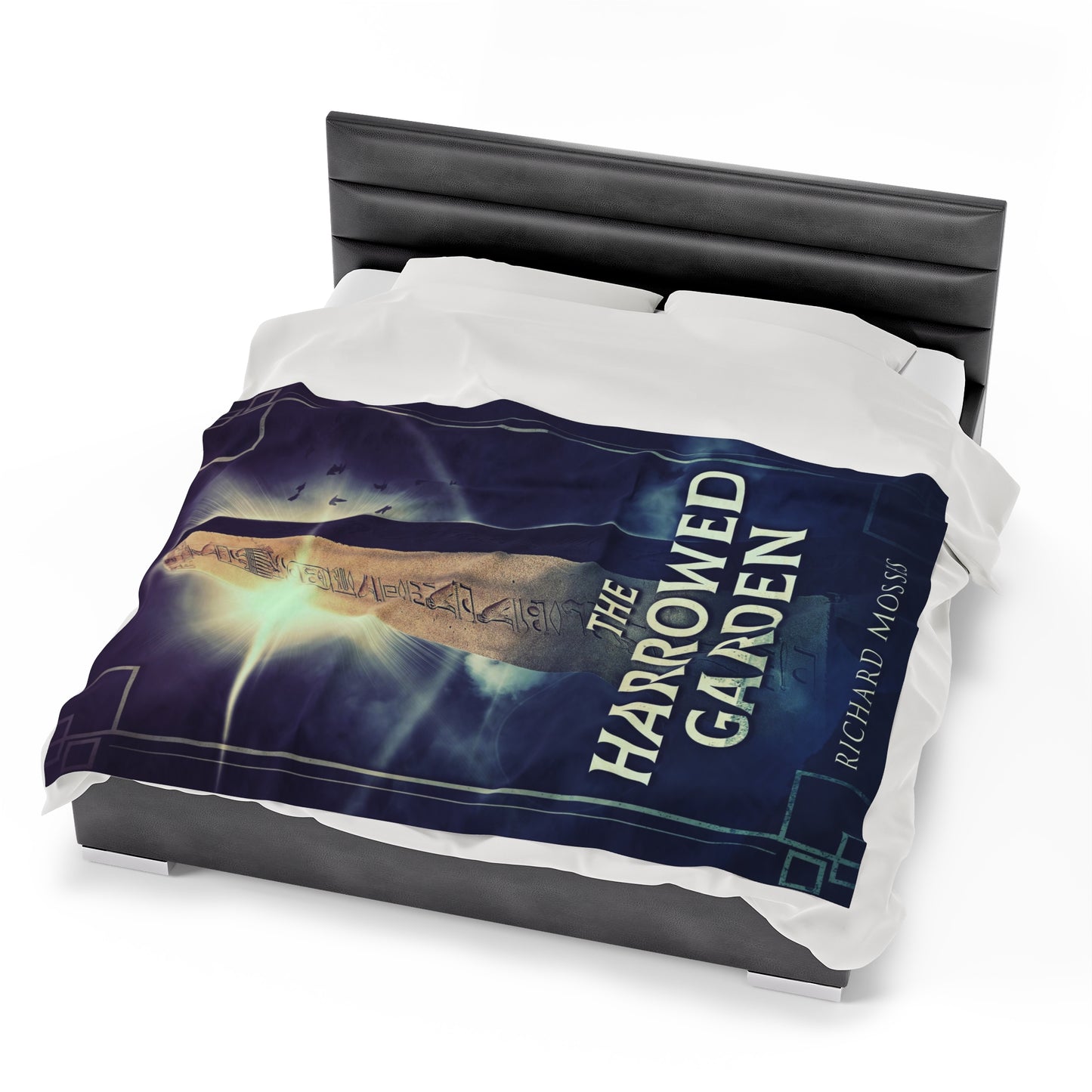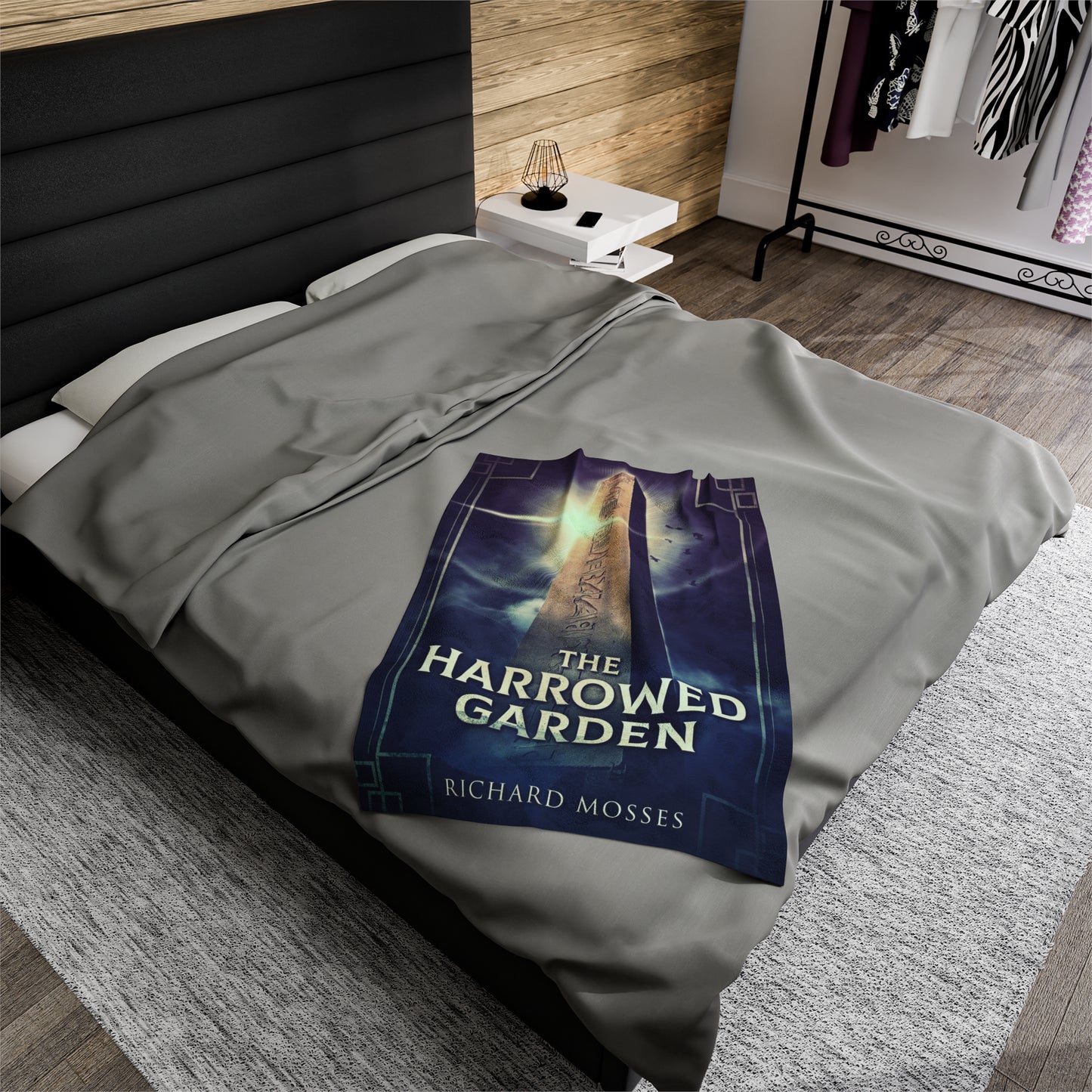 Create a cozy and warm atmosphere at home with this plush velveteen blanket. It is soft to touch and perfect for any home. The cover art in this blanket is from Richard Mosses's book, The Harrowed Garden.