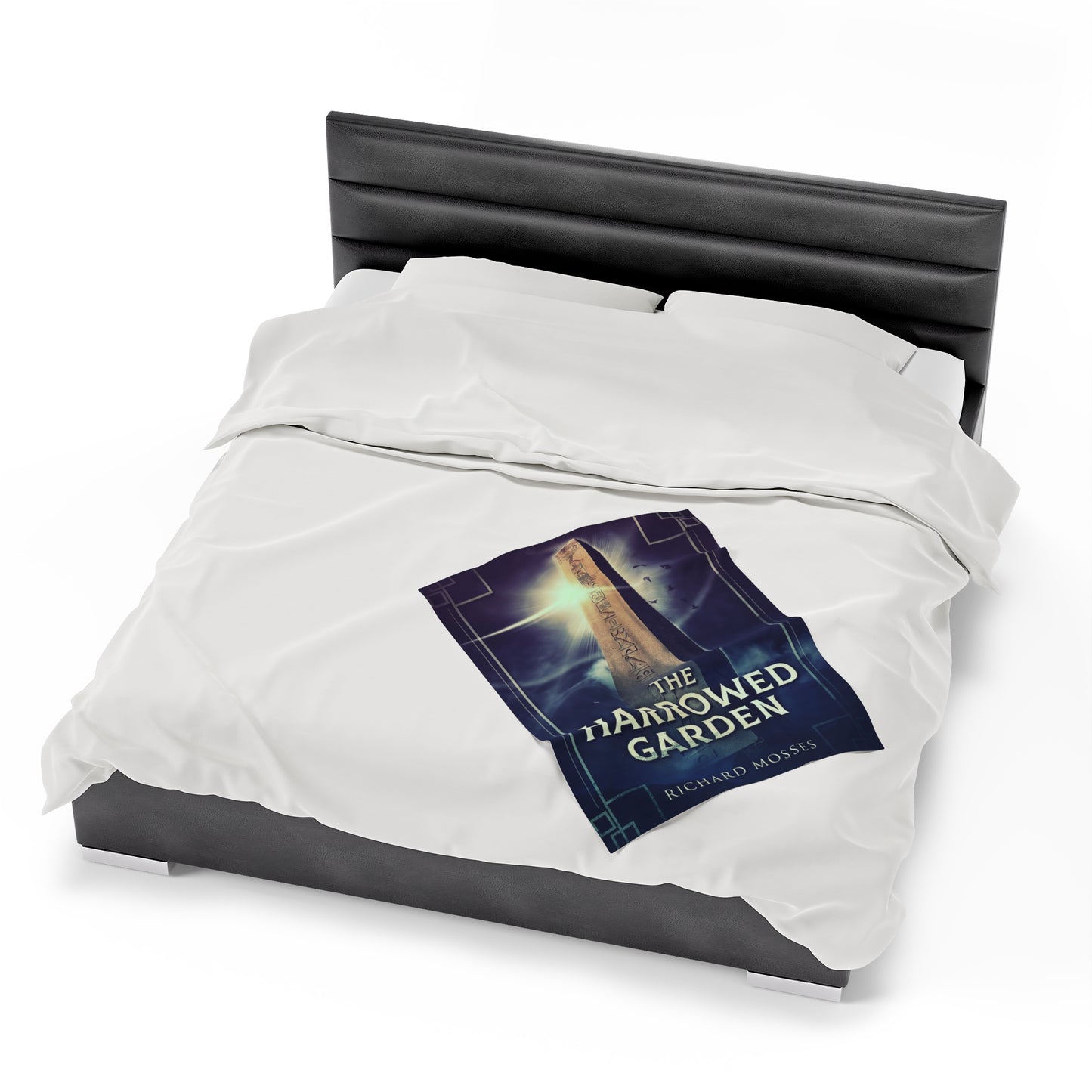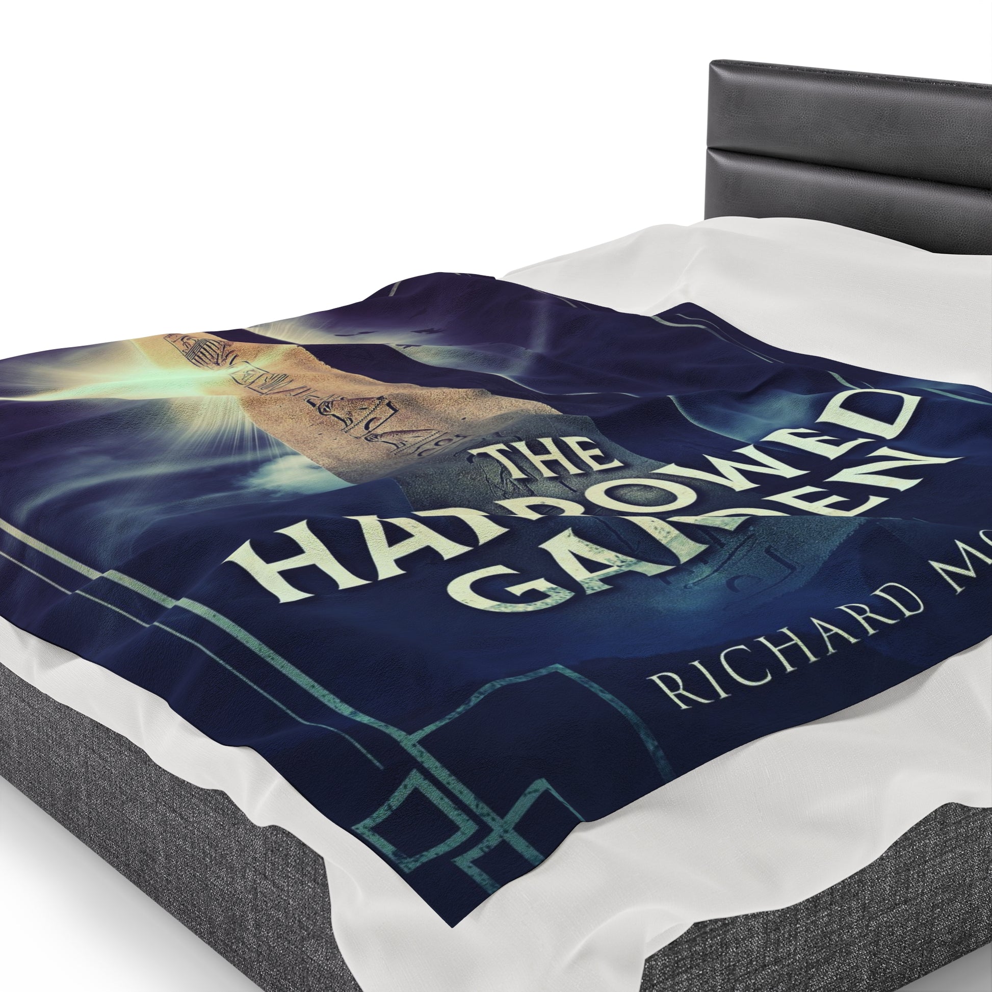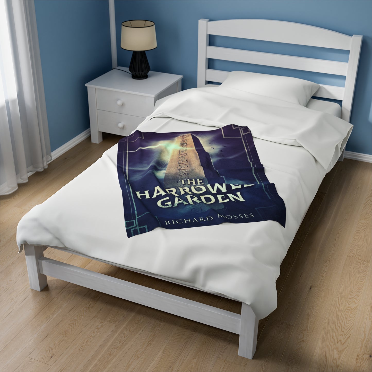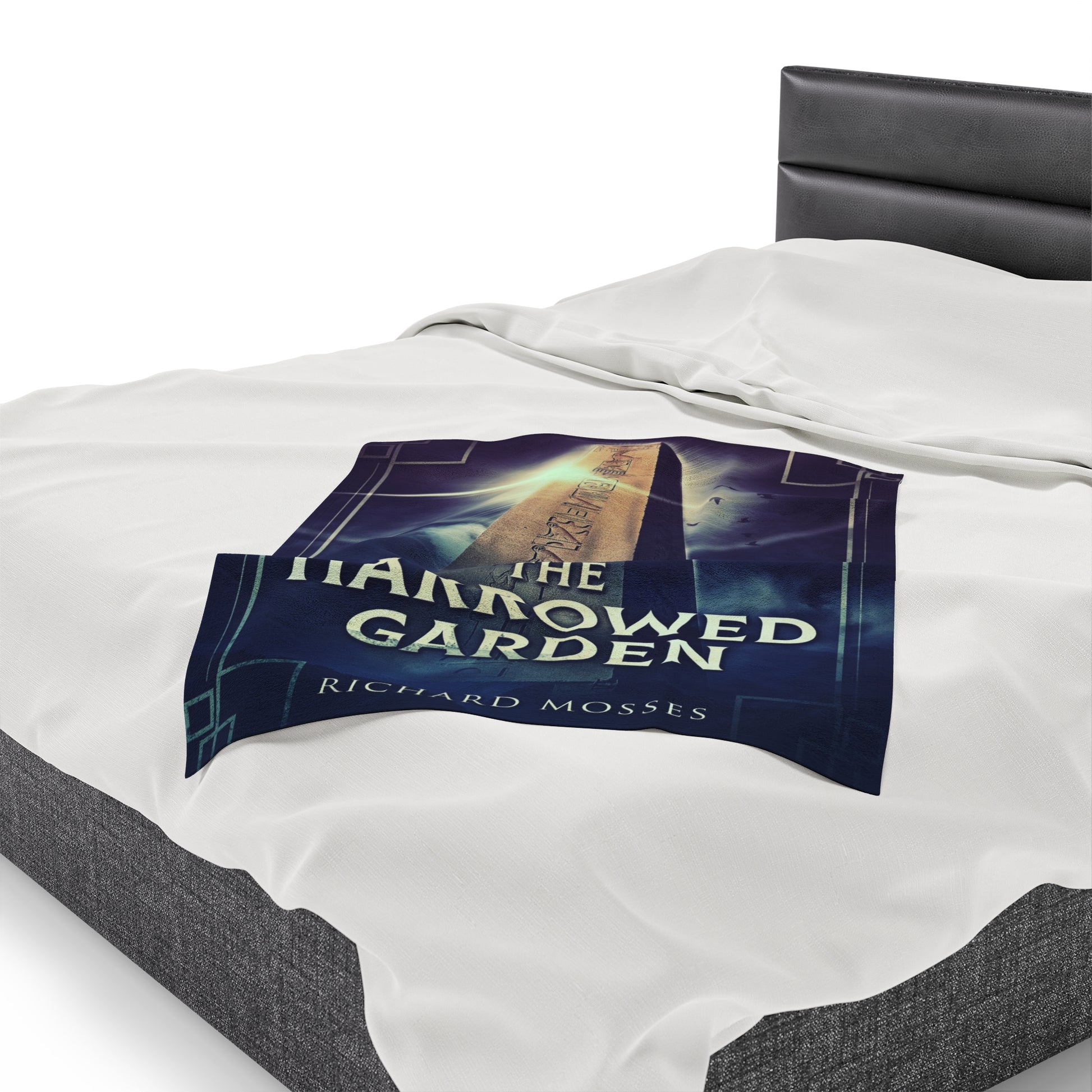 Create a cozy and warm atmosphere at home with this plush velveteen blanket. It is soft to touch and perfect for any home. The cover art in this blanket is from Richard Mosses's book, The Harrowed Garden.