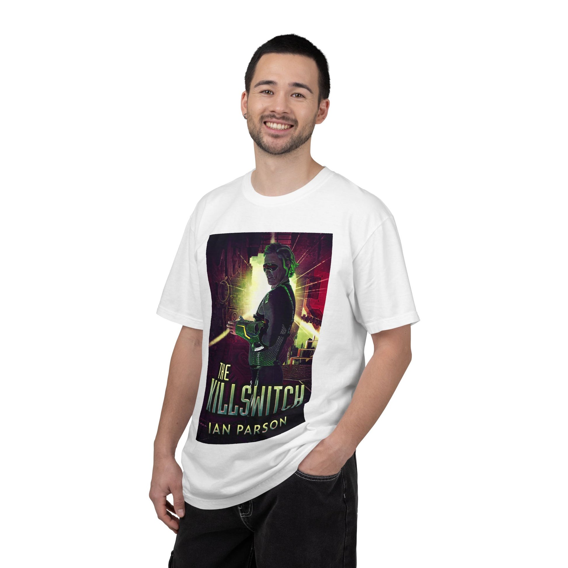 This soft-washed, garment-dyed T-shirt will bring extra coziness to your wardrobe while the relaxed fit makes it an excellent daily choice. The double-needle stitching throughout the tee makes it highly durable, while the lack of side seams helps the shirt retain its shape. The book cover art on this T-shirt is from Ian Parson's book, The Killswitch.