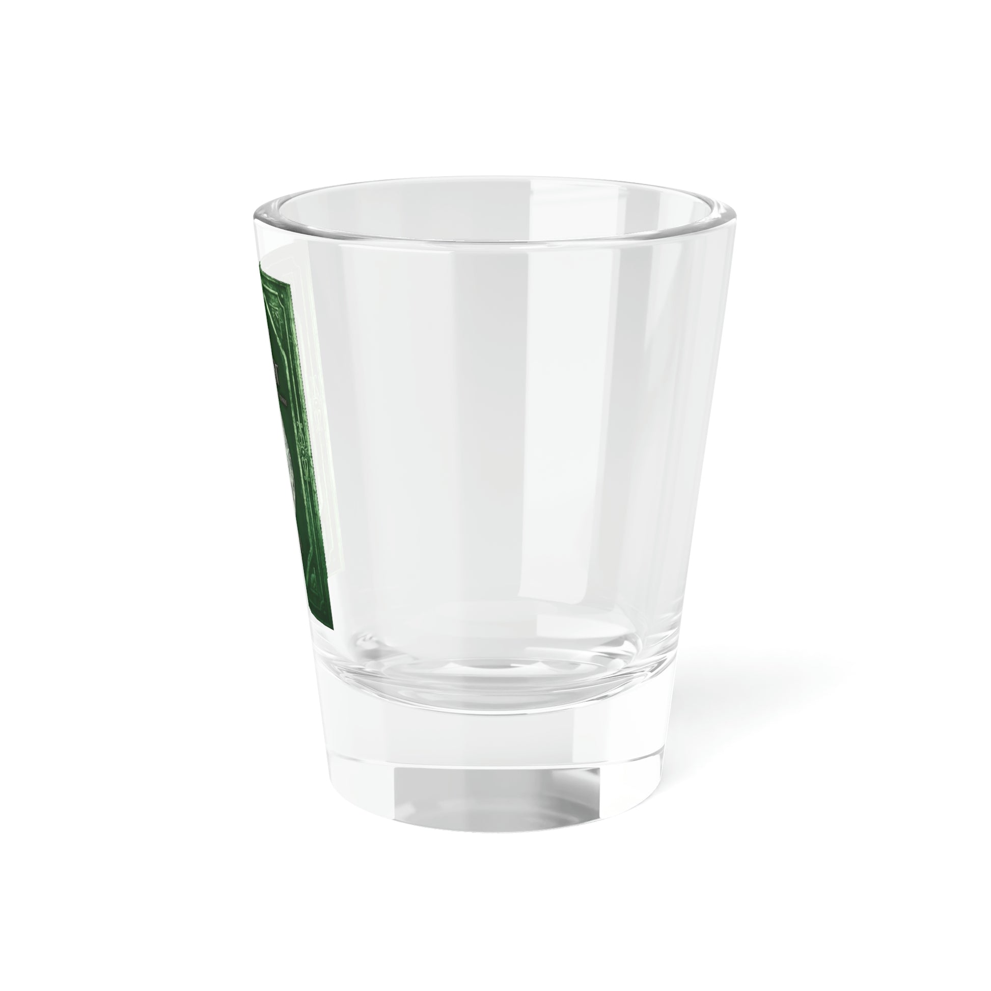 This 1.5oz (44.3ml) shot glass is made from restaurant-grade clear glass, giving it a quality feel. The solid base makes it sturdy and reduces the risk of tipping it. The book cover in this shot glass is from Jennifer Ealey's book, The Lost Forest.