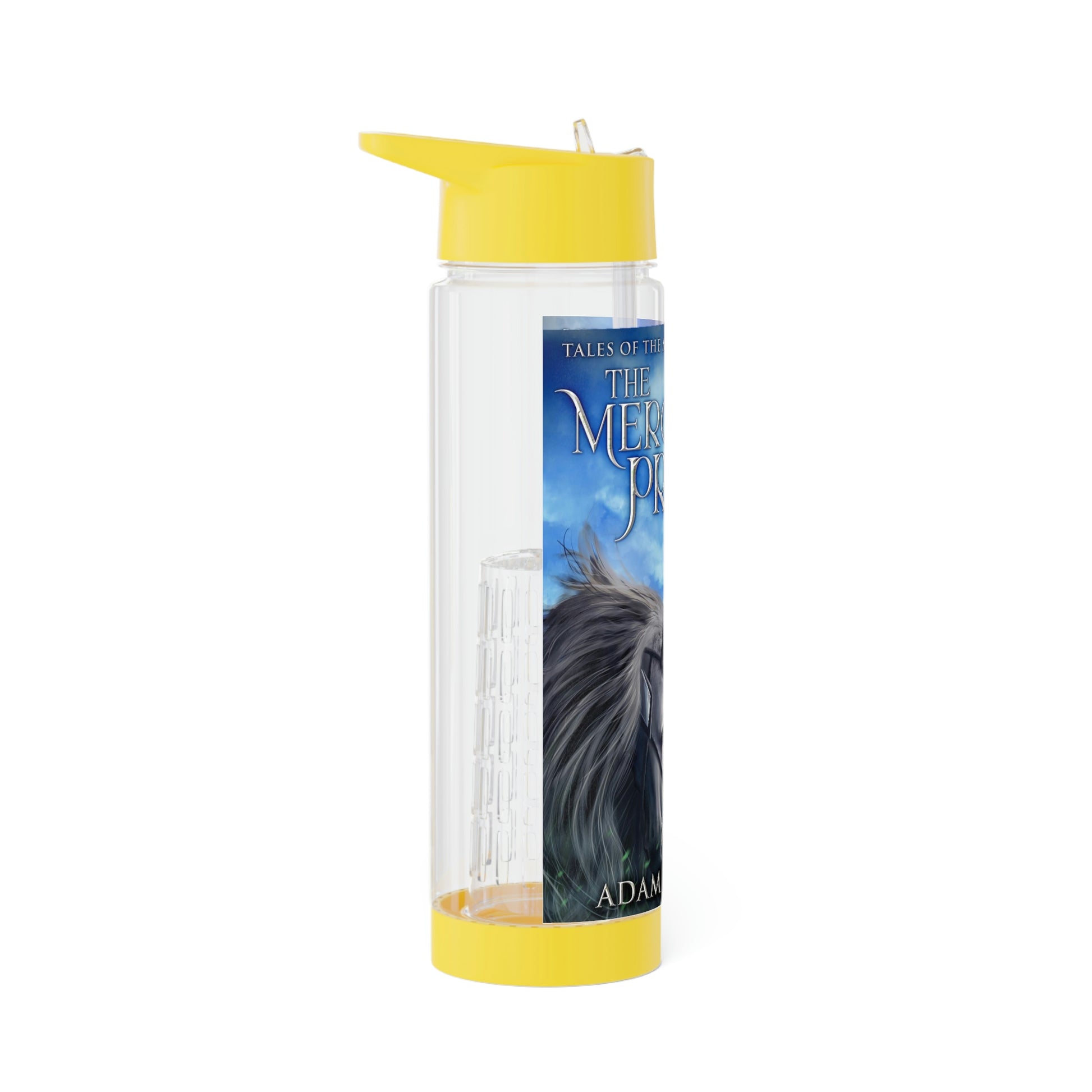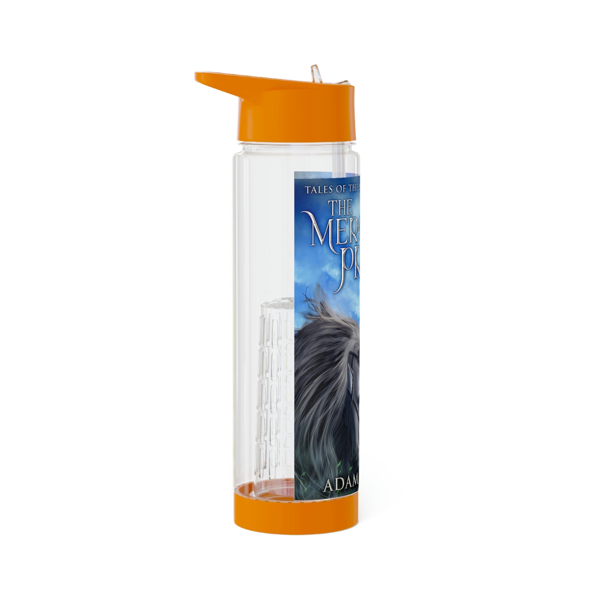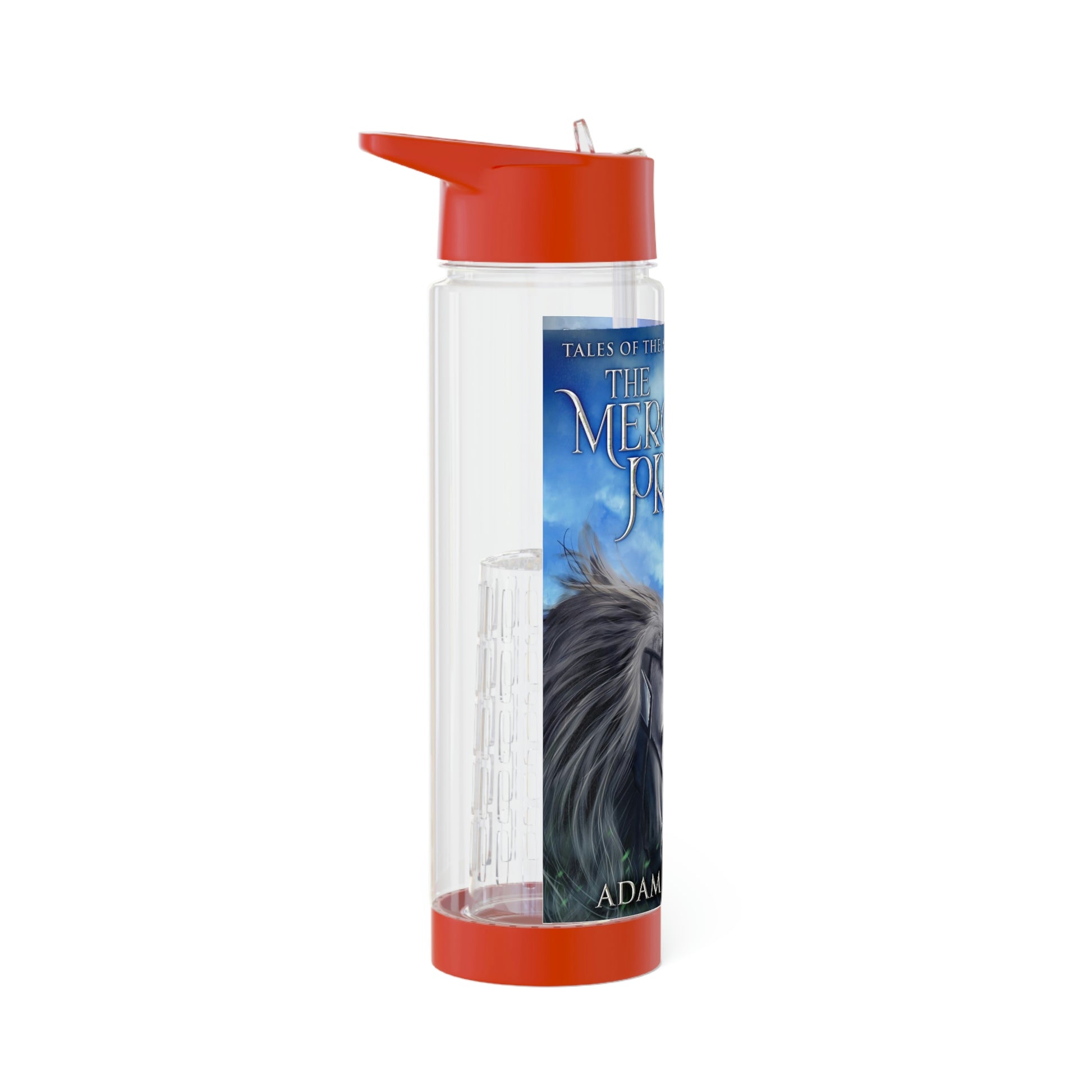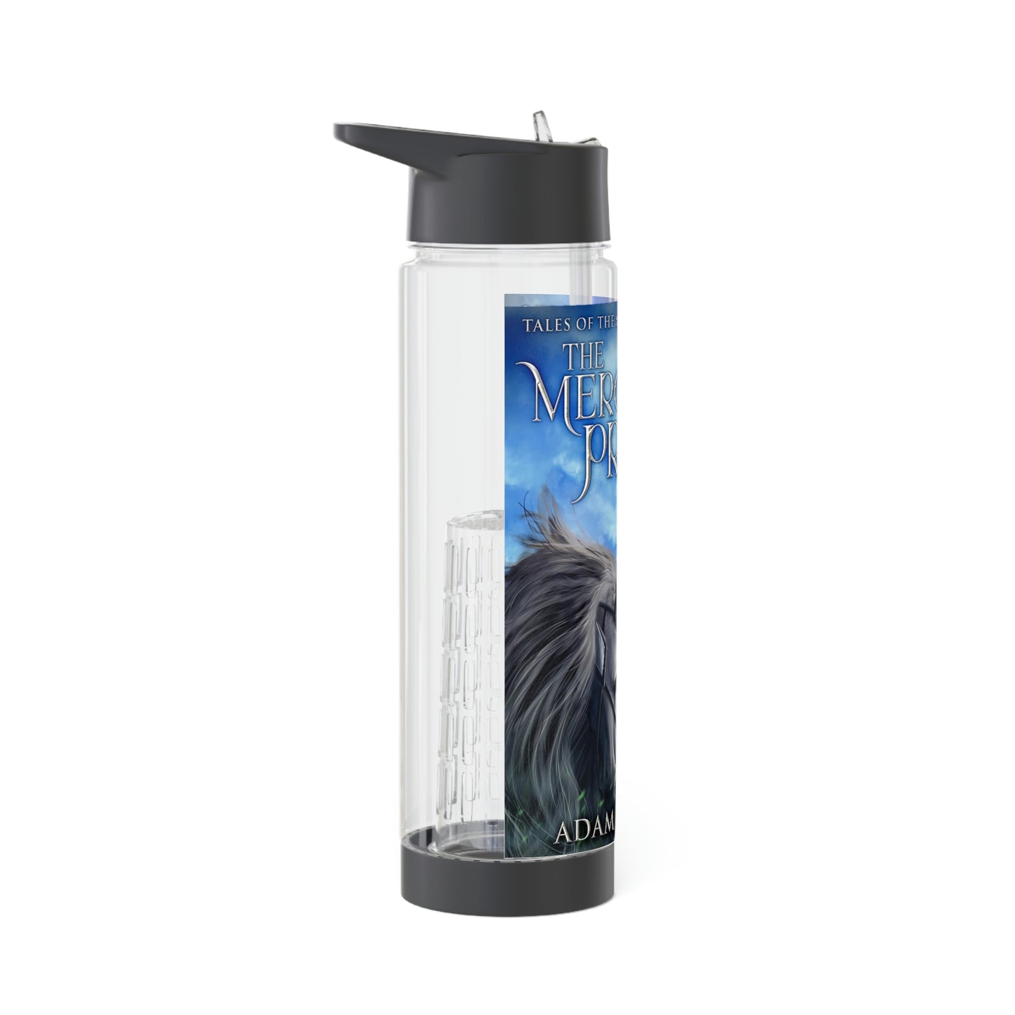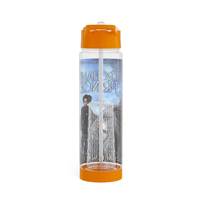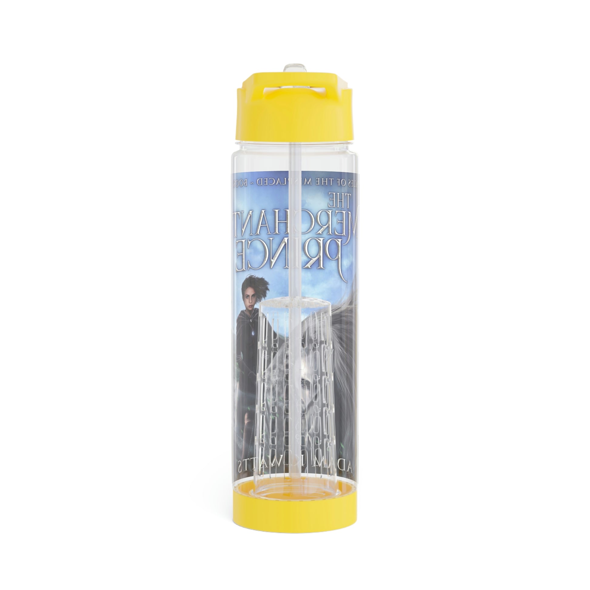 Add flavor and personality to your water with this infuser bottle. Twist the base off to access the infuser and add fruits, tea leaves, or anything you desire to enhance the flavor of your water. On the top, you'll find a twist-on lid with a flip-top drinking sprout for a seamless drinking experience. This infuser is excellent for using at home, during outdoor excursions, or at the gym as a sports bottle. The cover art in this infuser water bottle is from Adam K. Watts's book, The Merchant Prince.