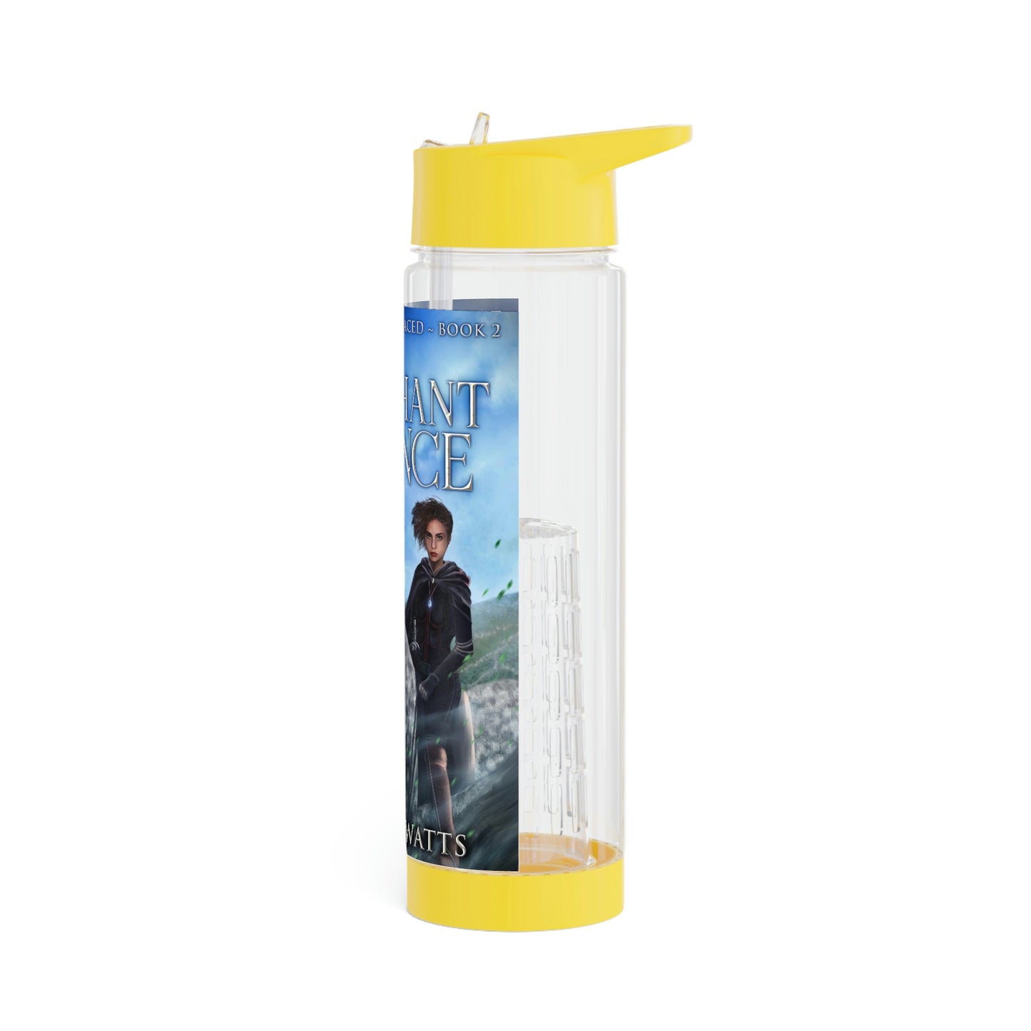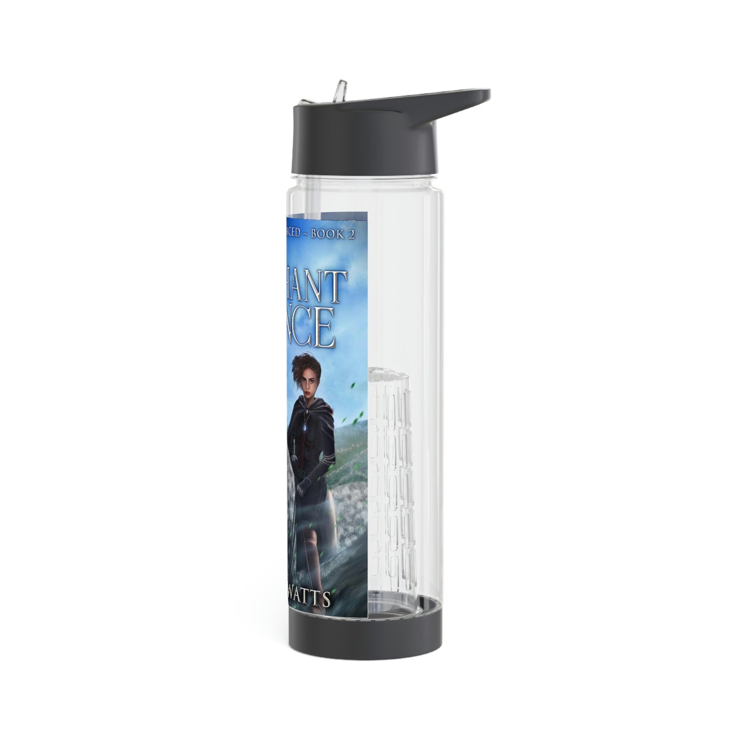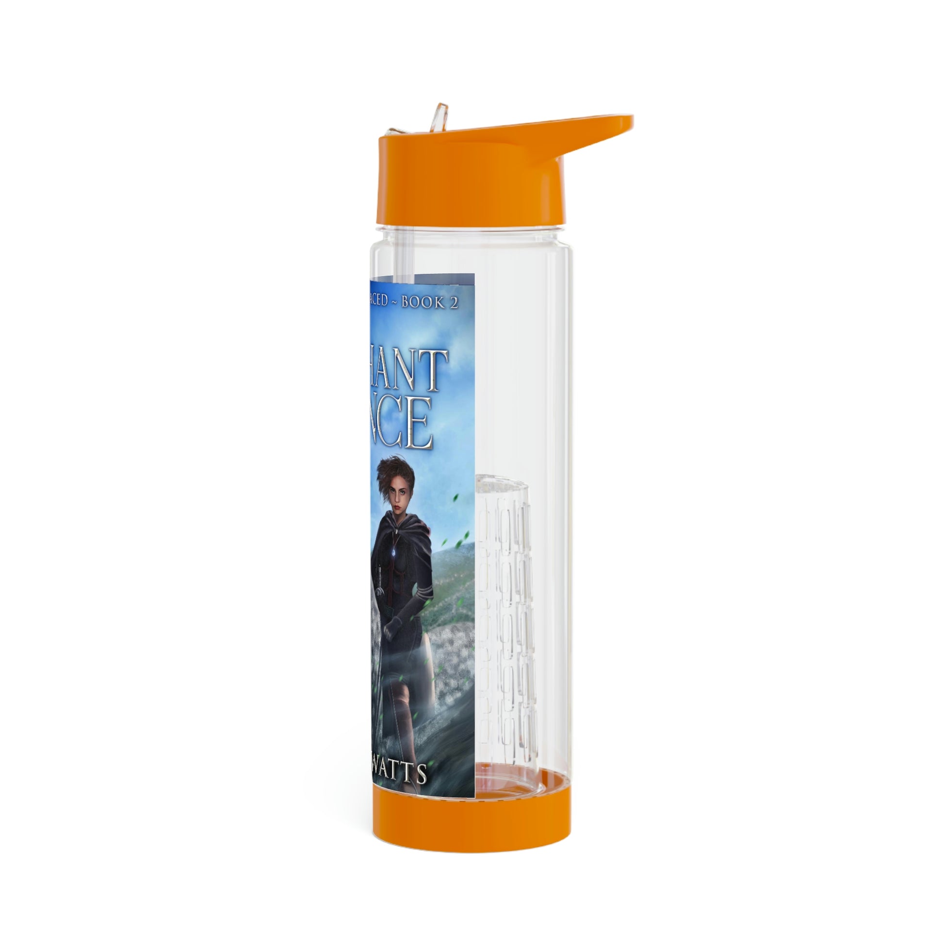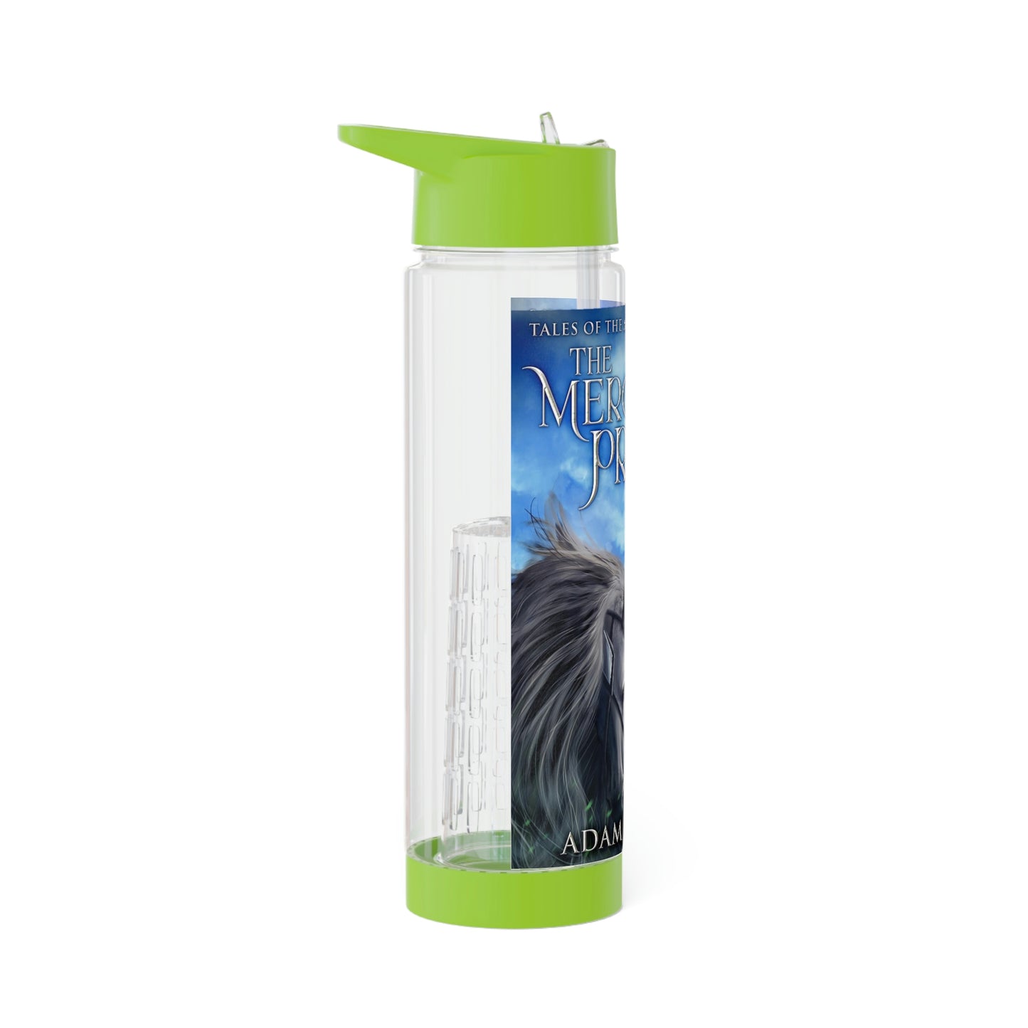 Add flavor and personality to your water with this infuser bottle. Twist the base off to access the infuser and add fruits, tea leaves, or anything you desire to enhance the flavor of your water. On the top, you'll find a twist-on lid with a flip-top drinking sprout for a seamless drinking experience. This infuser is excellent for using at home, during outdoor excursions, or at the gym as a sports bottle. The cover art in this infuser water bottle is from Adam K. Watts's book, The Merchant Prince.