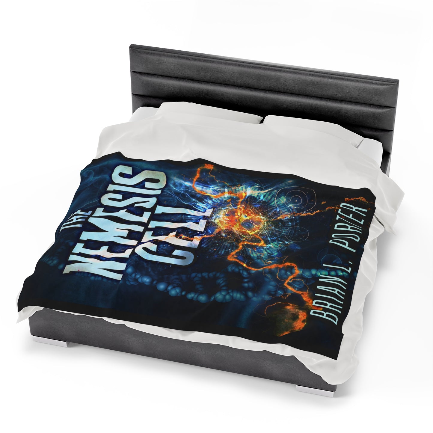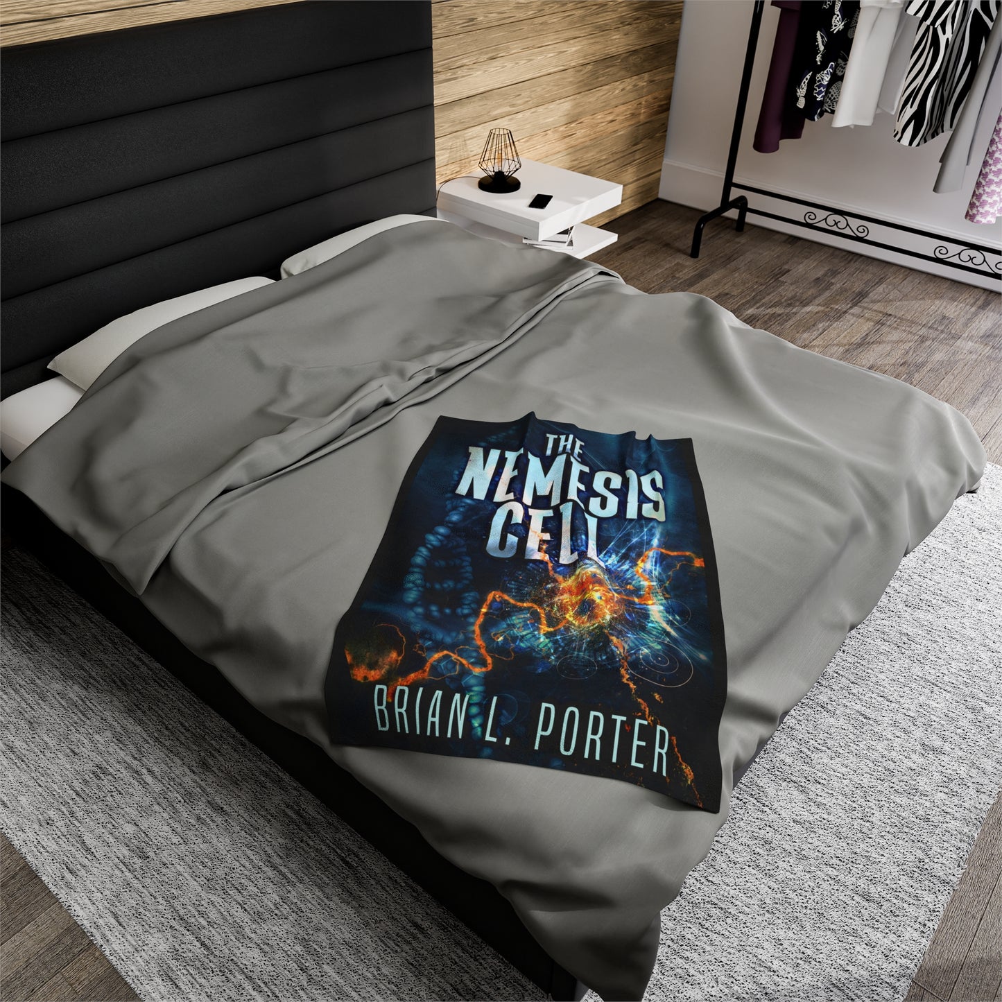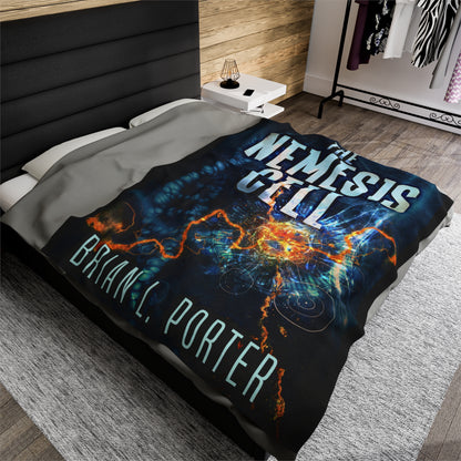 Create a cozy and warm atmosphere at home with this plush velveteen blanket. It is soft to touch and perfect for any home. The cover art in this blanket is from Brian L. Porter's book, The Nemesis Cell.