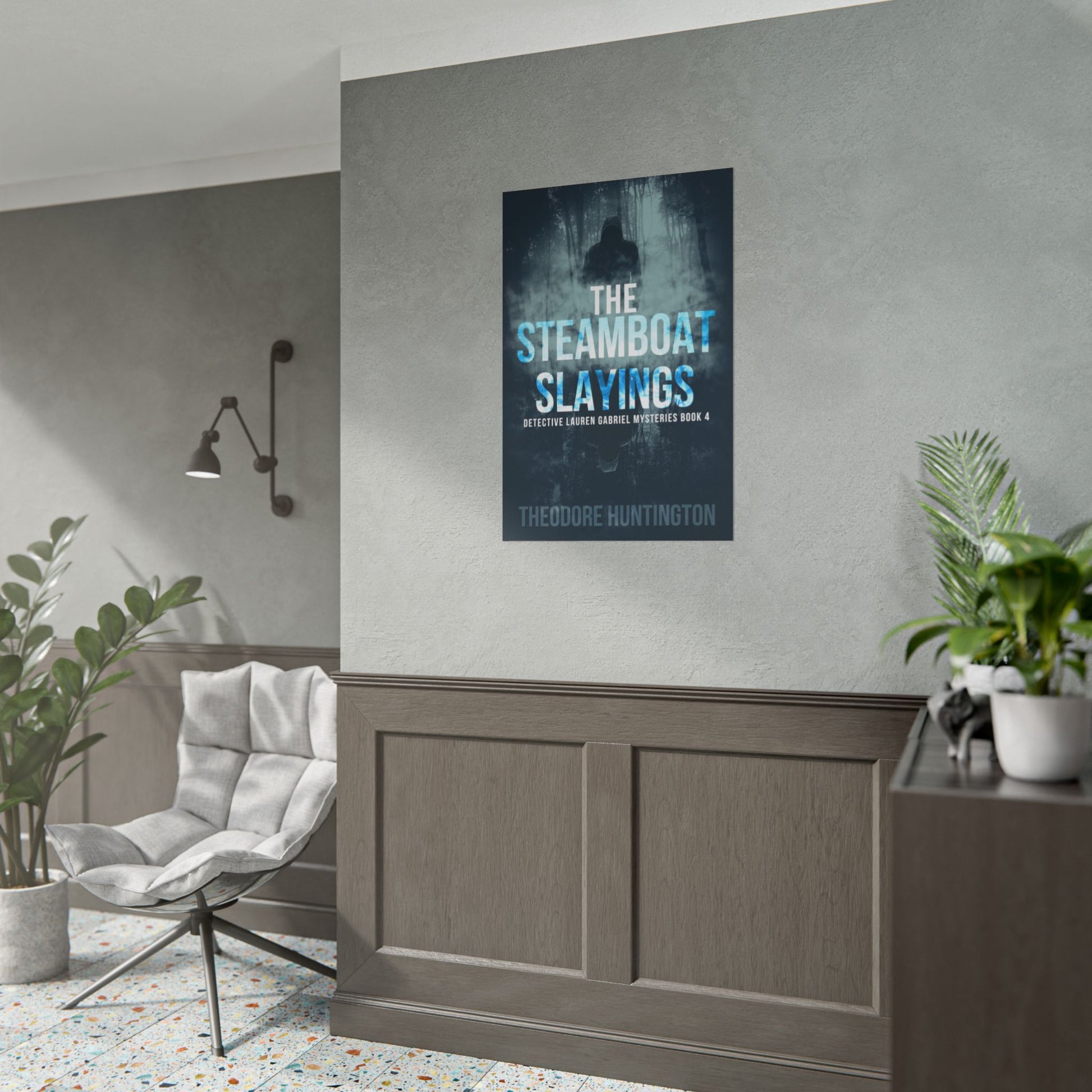 Enhance your home décor with this poster featuring the cover art from Theodore Huntington’s book, The Steamboat Slayings. Available in three sizes and two finishes: matte or semi-glossy.