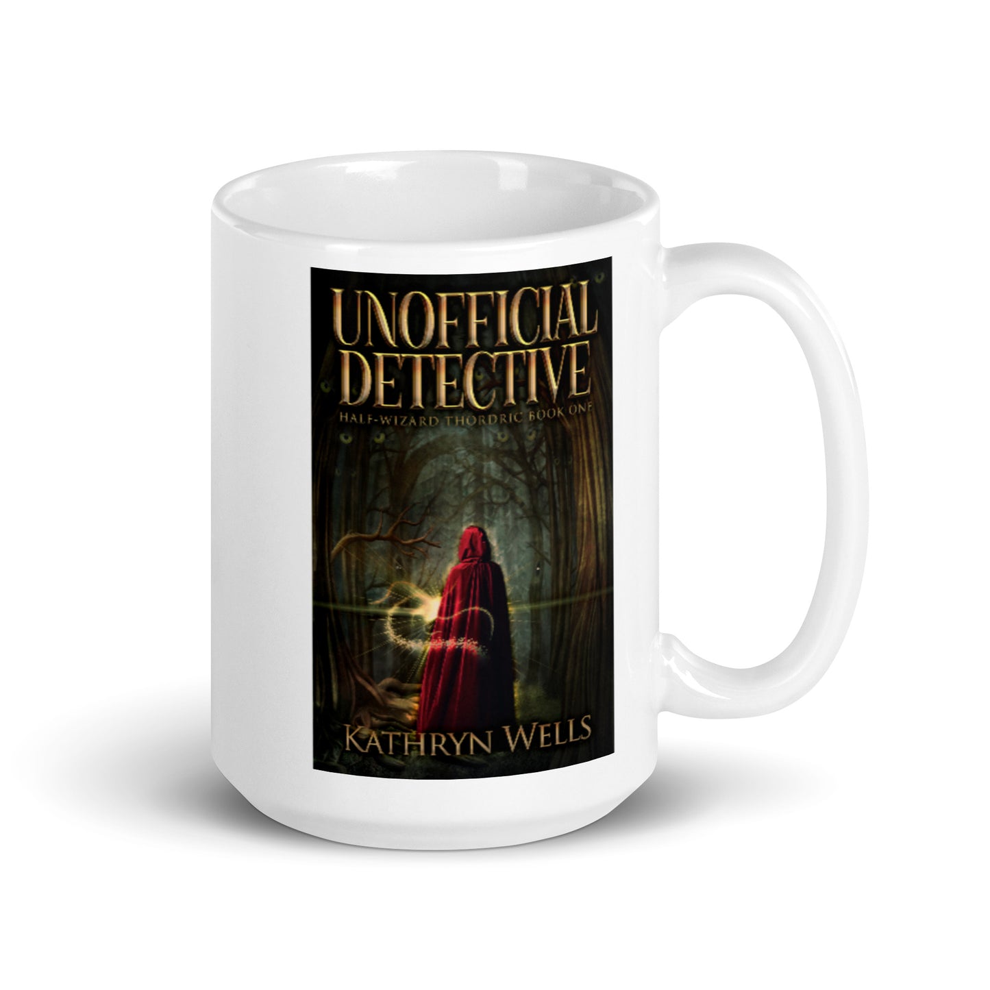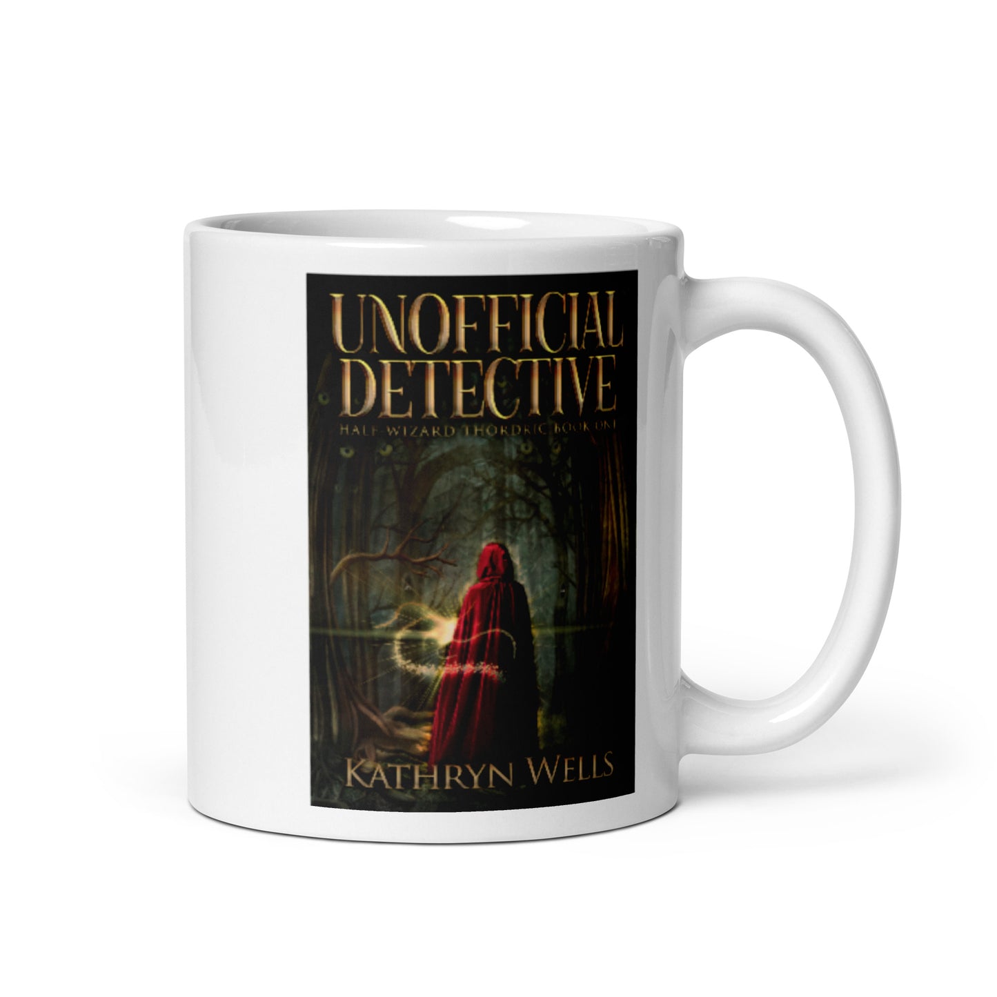 Whether you're drinking your morning coffee, evening tea, or something in between—this mug's for you! With beautiful cover art from Kathryn Wells's book, Unofficial Detective, the mug is sturdy and glossy with a vivid print that'll withstand the microwave and dishwasher.